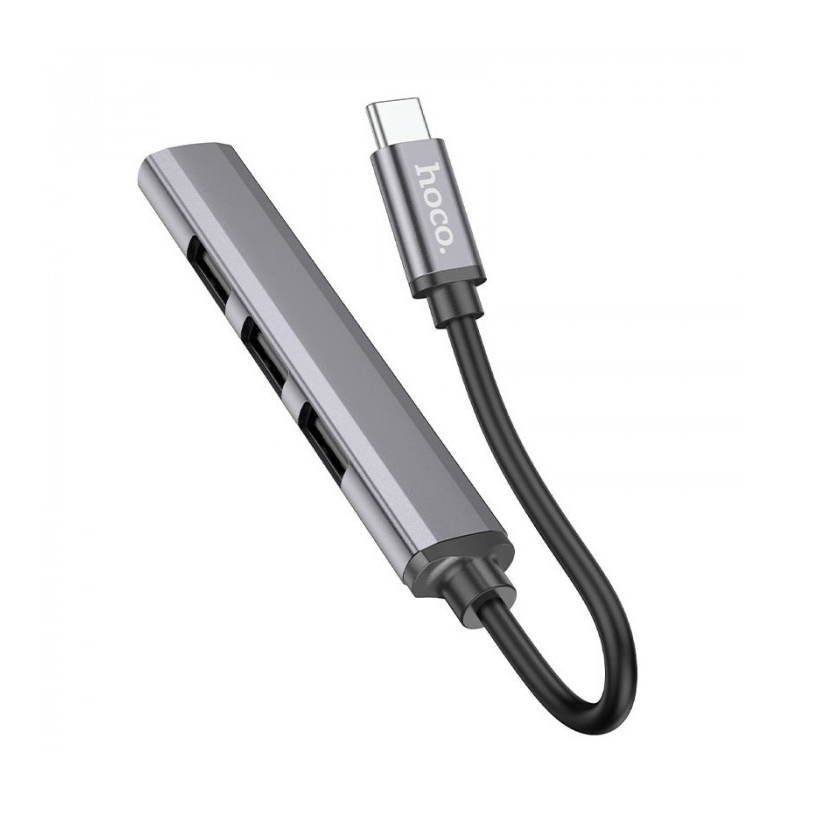 Hoco USB 3 hub USB C to 4 port USB adapter 3 x USB 2 1 x USB 3 windows mac linux consoles HB26. Grey