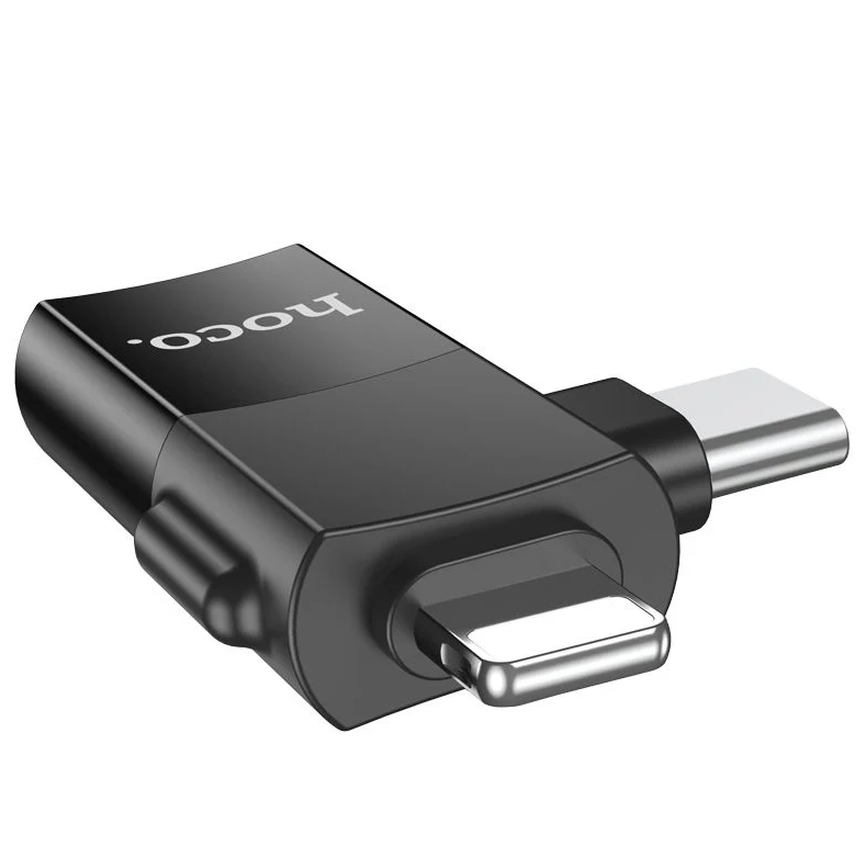 The Hoco UA17 2-in-1 Adapter offers versatile connectivity with both iP (Lightning) male and Type-C male connectors, allowing easy connection to USB female devices. Designed for seamless data transfer and charging, it supports a wide range of devices, including iPhones, iPads, Android phones, and tablets. The compact and lightweight design ensures portability, making it a convenient tool for everyday use. Crafted from durable materials, it provides reliable performance and long-lasting durability. With the Hoco UA17 adapter, you can connect USB peripherals to your devices with ease, wherever you are.